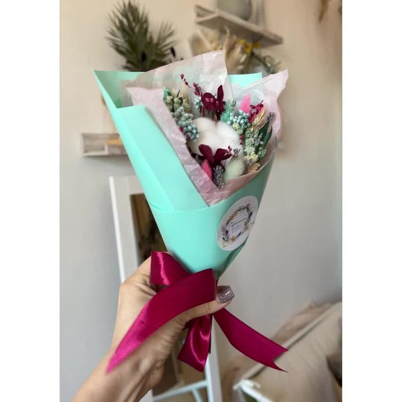Букет комплимент из сухоцветов с лавандой бирюзово - желтый