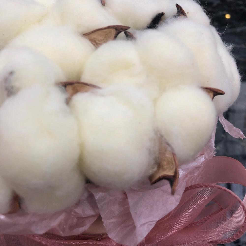 Нежный авторский букет из французских роз и хлопка