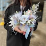 “Атлас☁️” – цветочная композиция с зефиром в деревянном ящике