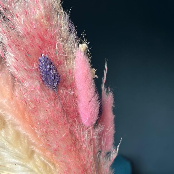 лист пальмы сухоцвет – 1 шт.Лагурус (сухоцвет) – 3 шт.пампас мини сухоцвет – 3 шт.пампас – 1 шт.фаларис сухоцвет – 4 шт.Нигелла сухоцвет – 3 шт.