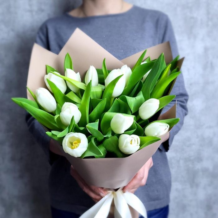 15 белых тюльпанов в плёнке