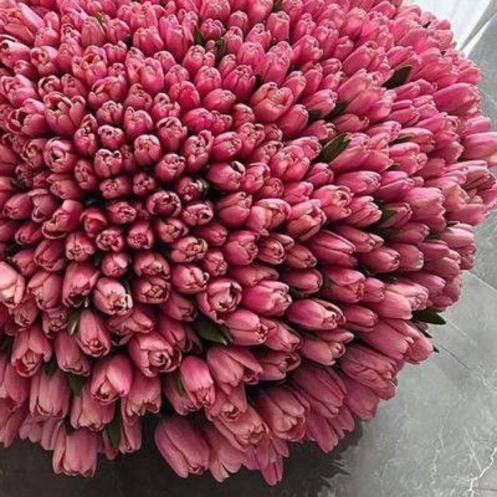 Тюльпан розовый – 601 шт.Корзина плетеная – 1 шт.Лента атласная – 2 шт.Открыточка с вашими пожеланиями – 1 шт.хорошее настроение – 100 шт.инструкция по уходу за цветами – 1 шт.Кризал – 1 шт.