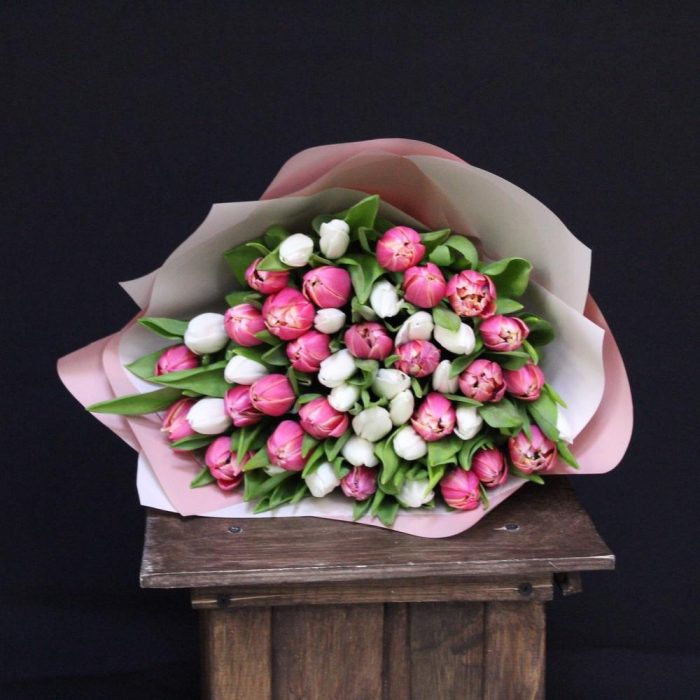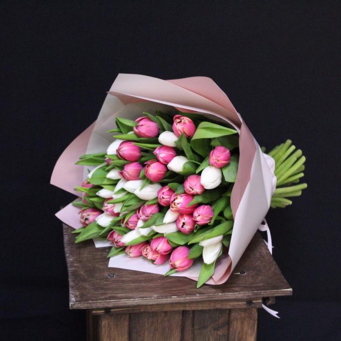 mono bouquet 45 из 51 тюльпана микс сортов Royal Virgin и Columbus