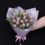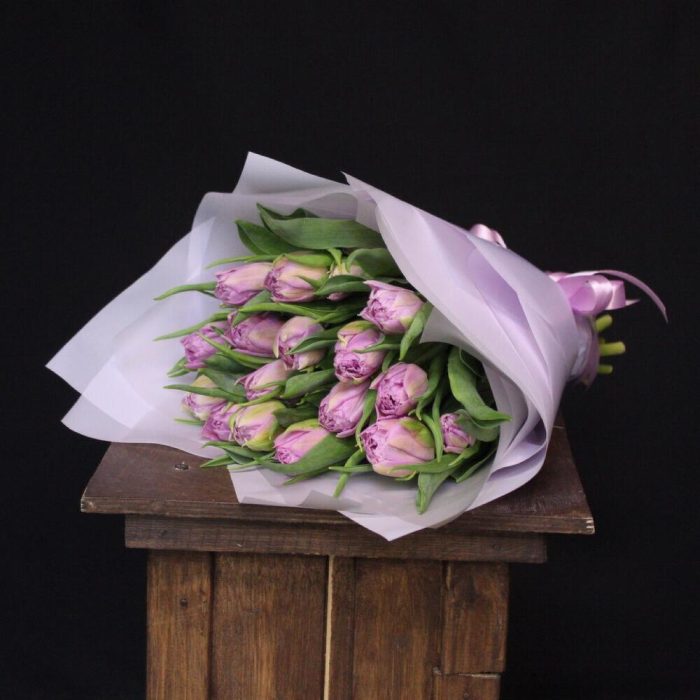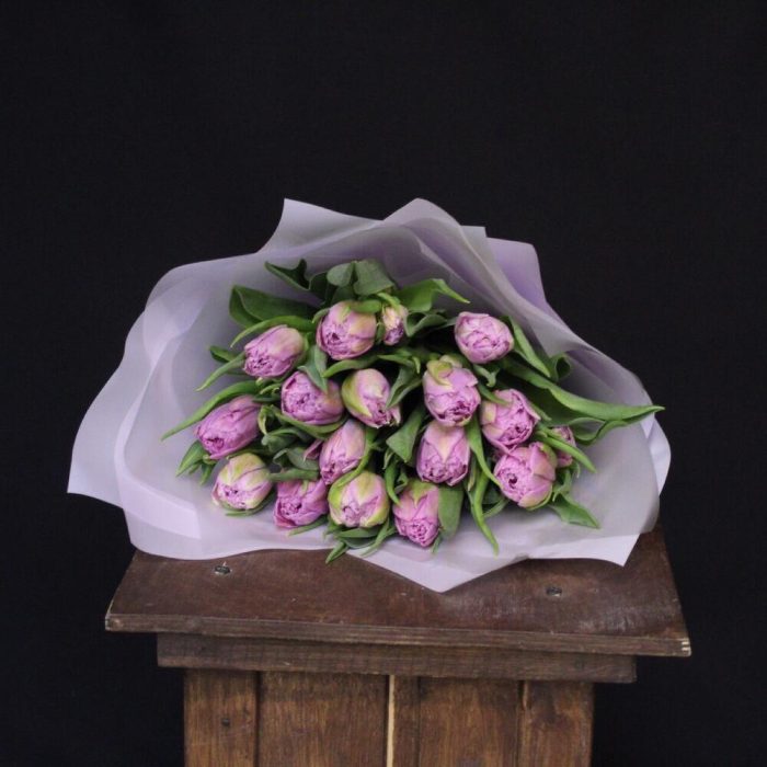Лента атласная – 1 шт.Тюльпан пионовидный дабл прайс – 15 шт.Пленка дизайнерская – 4 шт.