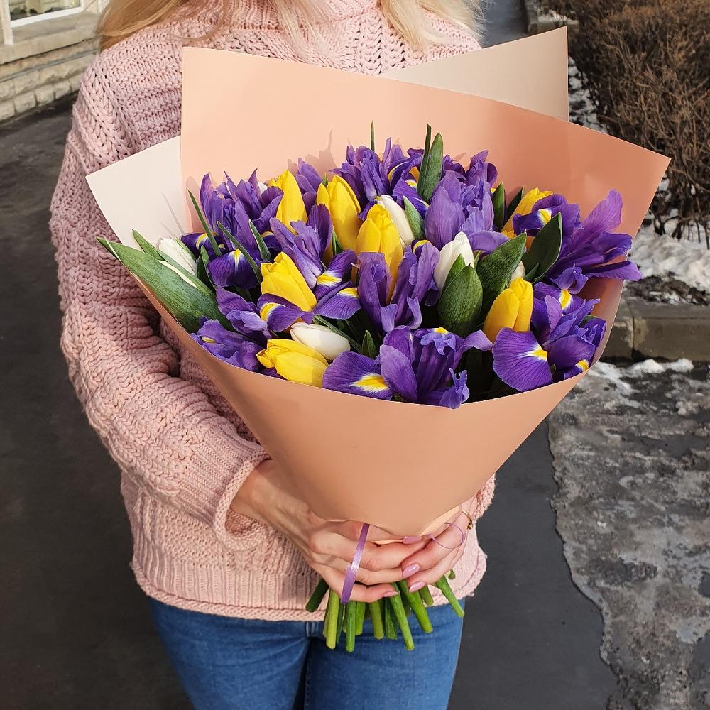 Тюльпан микс – 20 шт.Ирис – 15 шт.Упаковка дизайнерская – 3 шт.